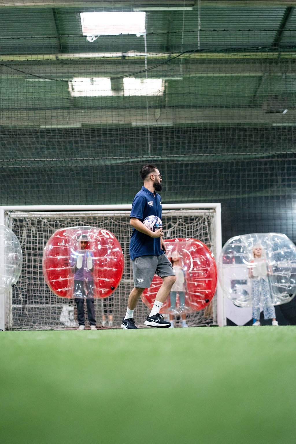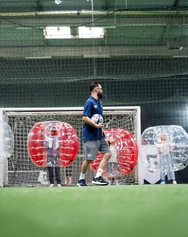 Grand passionné de foot et ultra pédagogue, il sait embarquer petits et grands dans l’aventure Bubble Foot avec un mélange de calme, d’humour et d'énergie maîtrisée.